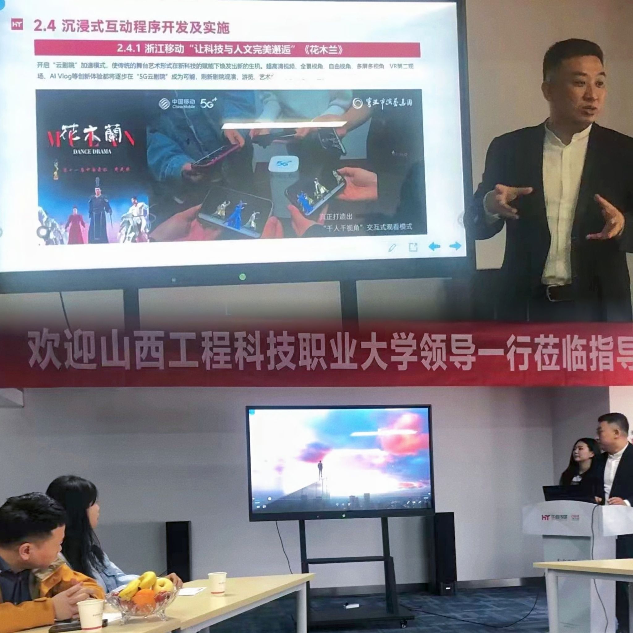 公司董事长、总经理韩应文,公司副总经理孟志刚等集团领导带领调研团队先后参观了5G多媒体调度平台区、IP形象研发部门、广告设计部门、视频制作部门、新媒体运营部门等,深入了解企业的生产机制、运营规模、行业项目、营销服务等内容。随后,校企双方就各自发展现状及需求做进一步沟通交流,并就校企互派人员挂职、学生顶岗实习、多媒体制作、人才培养模式、学生就业等方面达成初步合作意向。