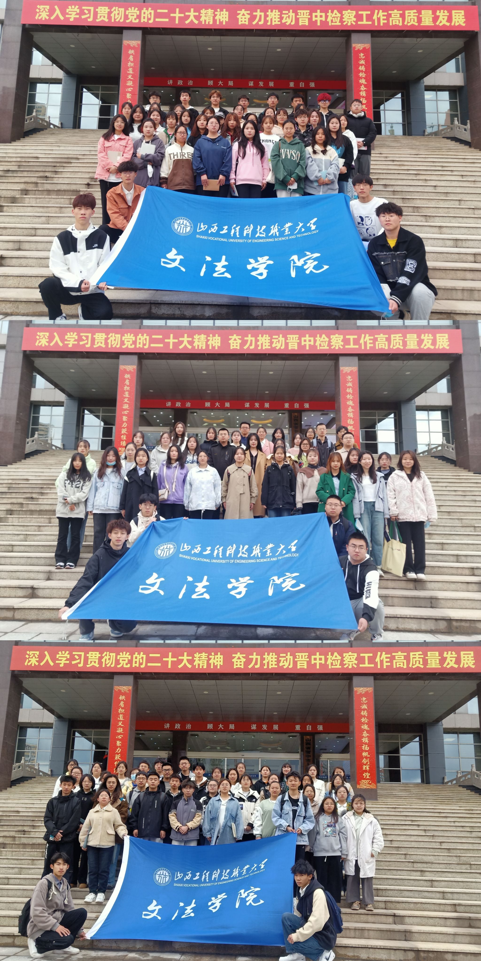 为培养新时代德法兼修的高素质法律人才,加深同学们对于专业的认识,实现职业教育的学习目标,让同学们能对未来所从事的角色及工作有更加深刻的认识,让书本中的知识与现实零距离接触。2023年4月4日下午,在文法学院的积极联系下,在罗丽娅老师的带领下,2022级法律专业学生到晋中市人民检察院开展了认知实习参观活动。