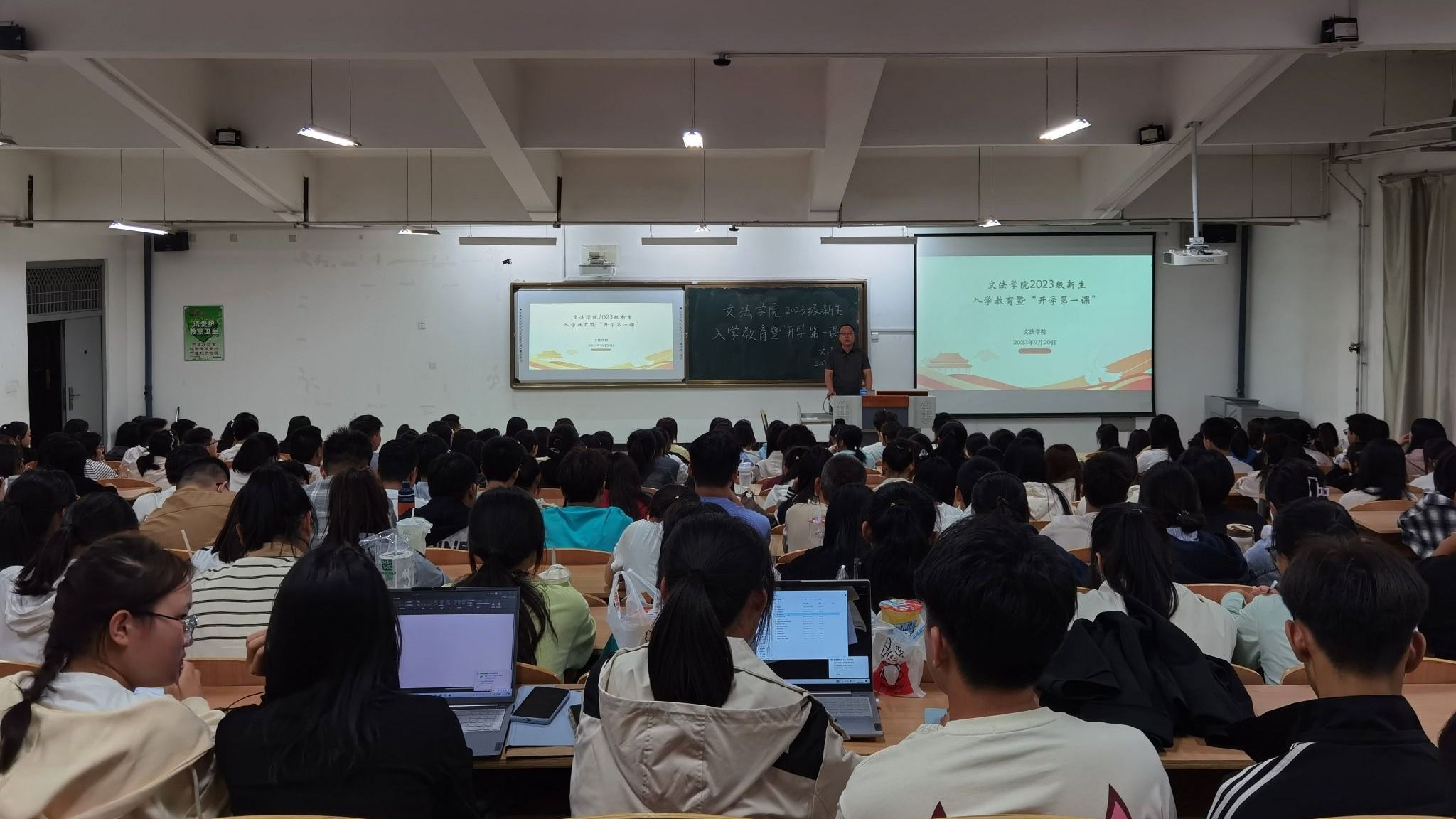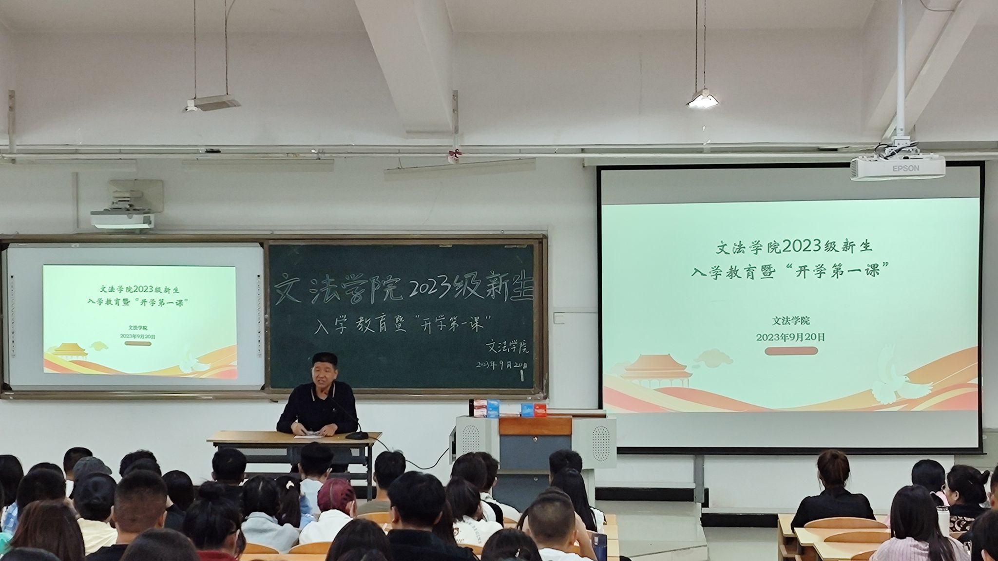 为帮助新生迅速适应大学生活,了解学校学习生活的管理模式,快速融入到校园文化氛围内,山西工程科技职业大学文法学院党委书记倪文强和党委第二负责人白存富于9月20日晚分别在在11号教学楼T19教室和10号教学楼T16教室开展了2023级全体新生入学教育暨开学第一课活动。