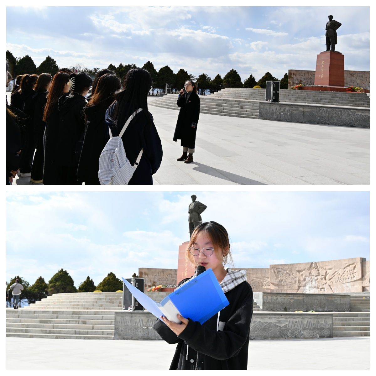而后,学生代表张兰悦涵分享了感悟。她表示站在烈士长眠的土地上,才真正理解了信仰的力量。作为新时代青年,同学们要铭记历史,把爱国之情化为报国之行。最后,高瑞红老师对同学们提出三点希望:一是坚定理想信念,从先烈精神中汲取奋进力量;二是厚植家国情怀,将个人成长融入国家发展;三是锤炼过硬本领,在实践中学真知、悟真谛。她勉励大家以先烈为榜样,争做堪当民族复兴重任的时代新人。