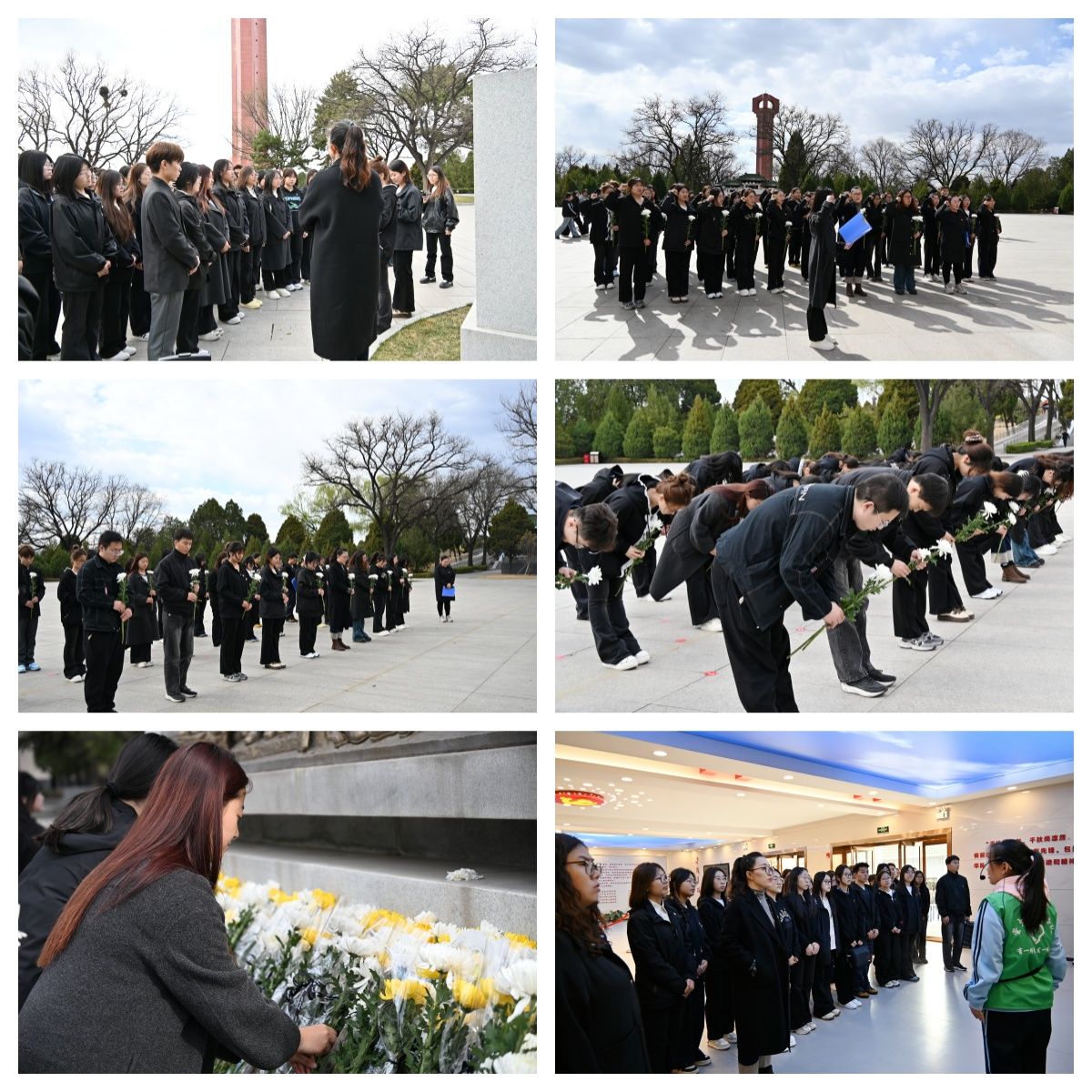在纪念碑前,全体成员举行了重温入党、入团誓词的仪式,随后默哀缅怀先烈。献花环节中,同学们手持菊花,集体鞠躬后依次献花,表达崇高敬意。之后,大家有序参观纪念馆,认真聆听革命先辈的英勇事迹。